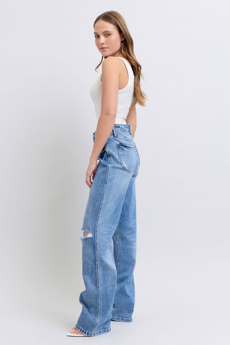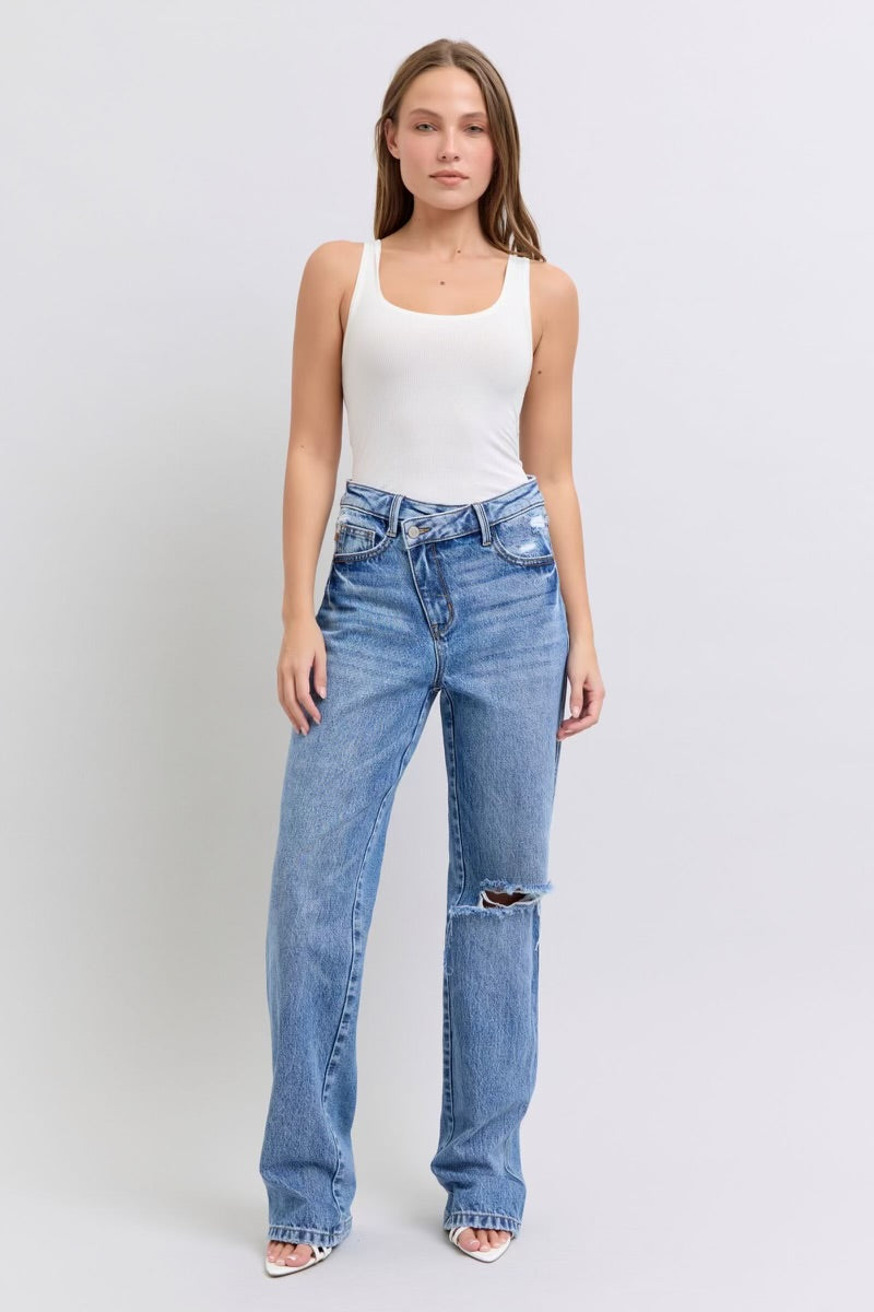 HW Rigid Magic Criss-Cross Destroy Knee Rip Dad Jean