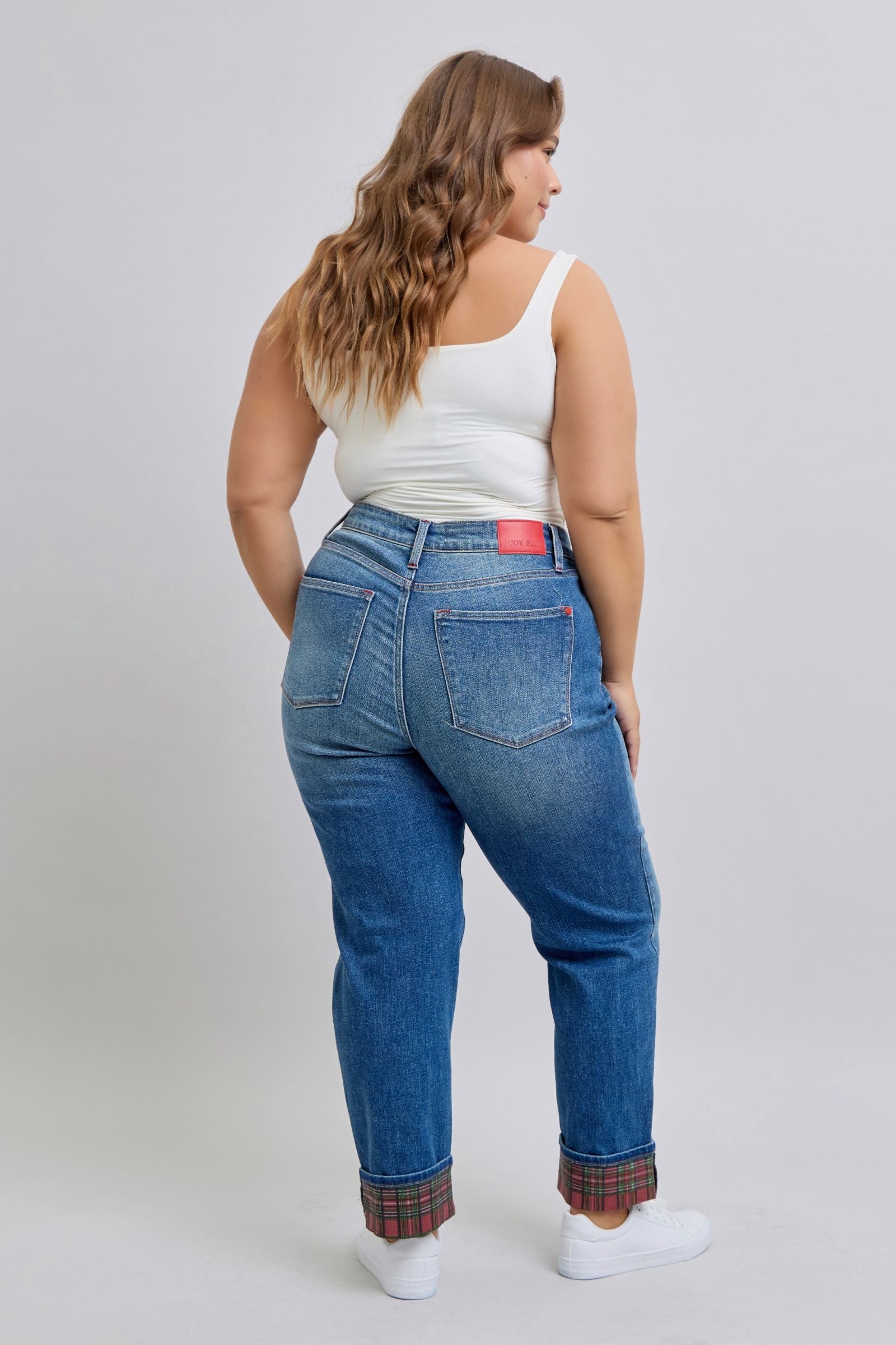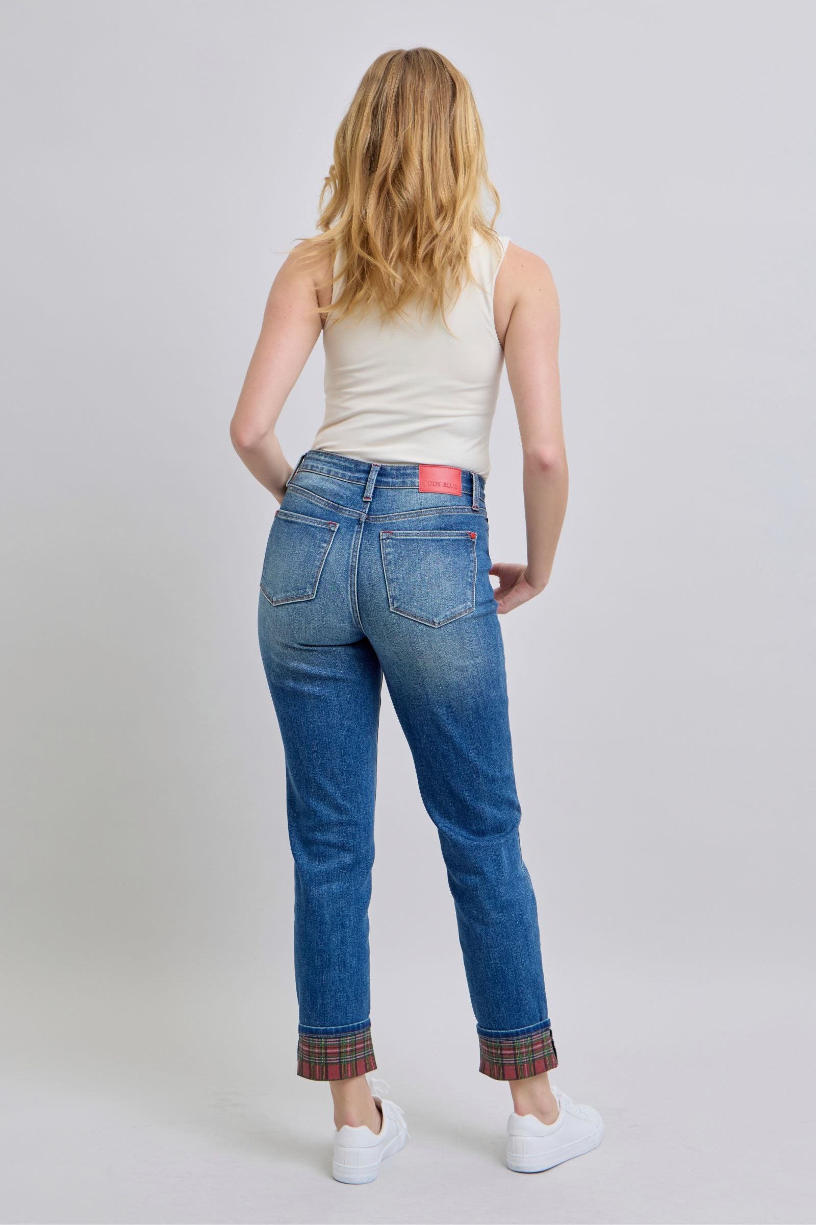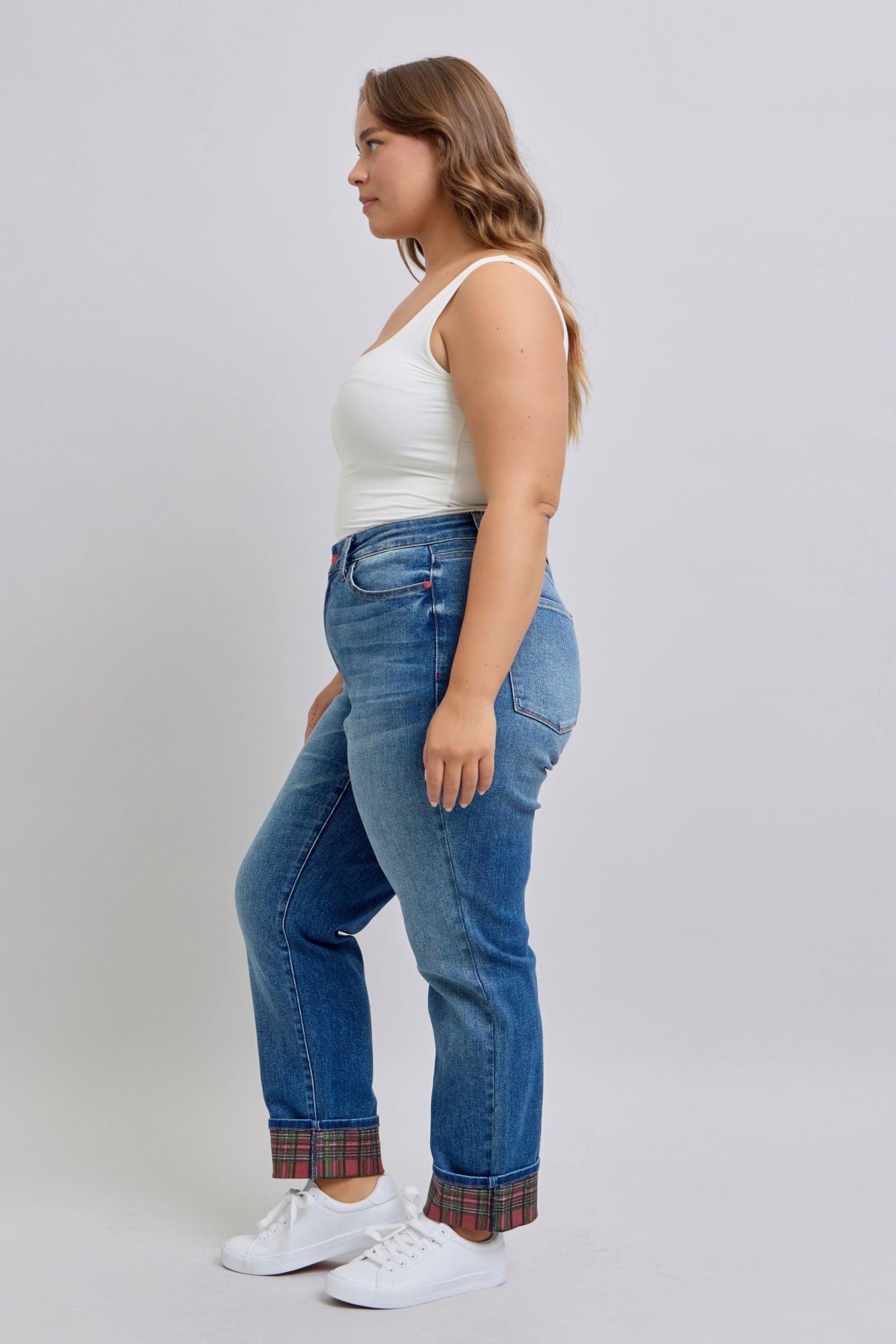 Judy Blue Mid Rise Plaid Print Cuff Boyfriend Fit